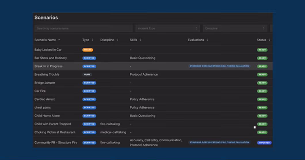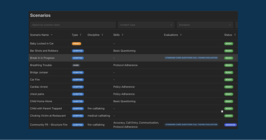 Training is no longer dependent on live calls, us 9-1-1 call simulations to expose every telecommunicator to all needed call types including rare and high-stakes calls.